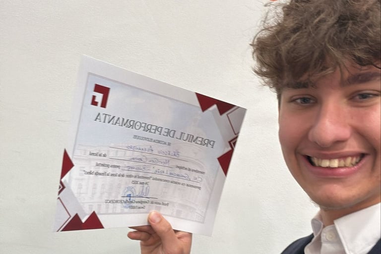 În mai 2025 am participat, împreună cu echipa mea, la concursul „Investind în viitor: de la liceu la Finanțe-Bănci”, organizat de ASE București, în parteneriat cu ING Bank România și Asociația Română de Finanțe-Bănci (RoFIBA).